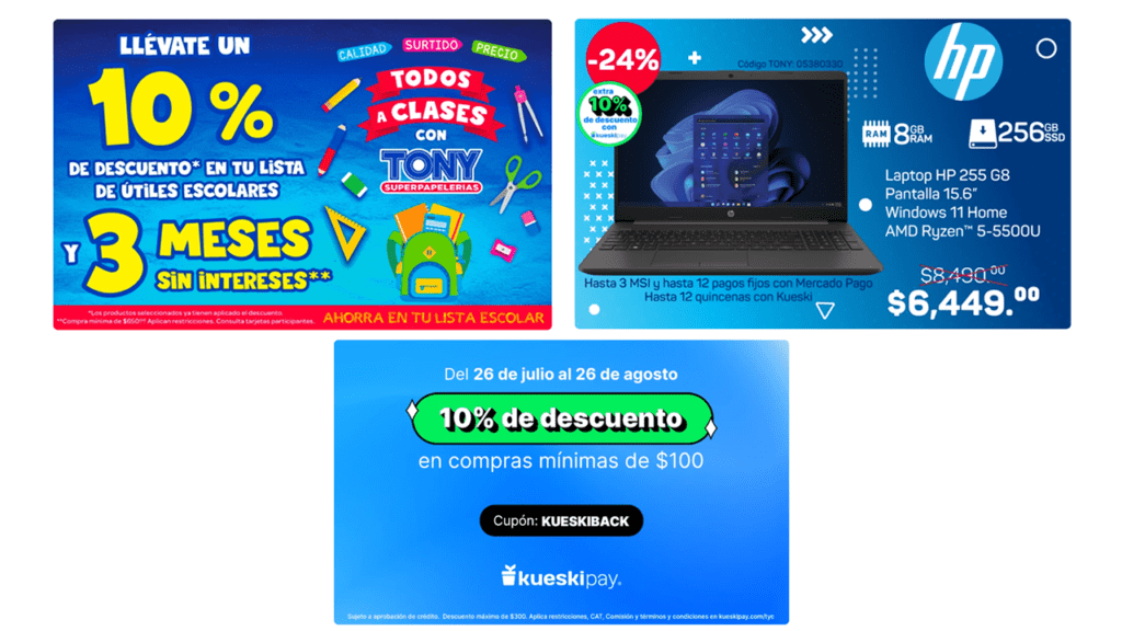 - Promociones bancarias: Durante la temporada de regreso a clases, Tony Superpapelerías colabora con varios bancos para ofrecer descuentos adicionales a quienes paguen con tarjetas de crédito o débito de instituciones participantes.
